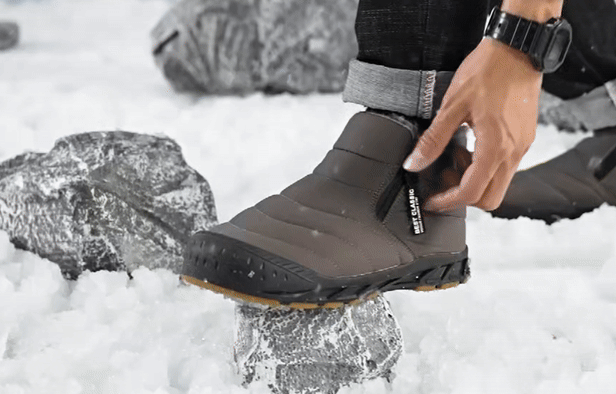 La fermeture éclair latérale vous permet de les enfiler facilement — plus besoin de vous battre avec des lacets trempés !