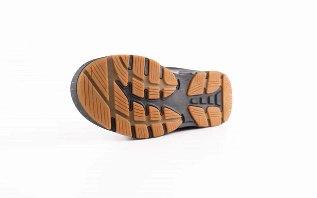 Sa semelle en gomme haute densité garantit une excellente adhérence sur pavé, asphalte mouillé ou neige tassée.